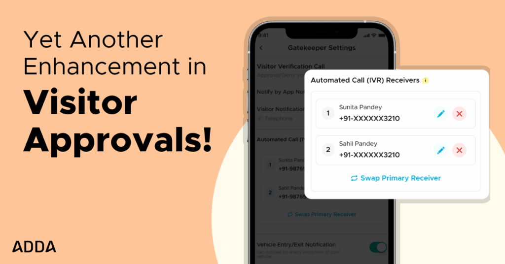 We found that the most effective approach is to let you set a Primary and Secondary contact for your unit. If the app notification alert for visitor approval isn’t responded to, the first automated approval call goes to your Primary contact. If there’s no response, the next call goes to your Secondary contact, one after the other. This ensures visitors get timely approvals while also not disturbing all members of a particular apartment or villa.