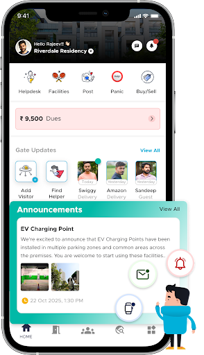 Every person living in your flat receives society announcements directly, so no one is left unaware of pest control, water shutdowns, safety notices and more.