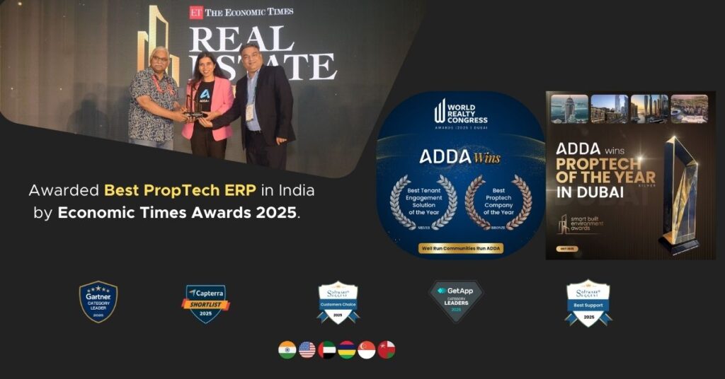 The year kicked off with a major milestone as ADDA was honored as the Best PropTech ERP in India at the Economic Times Awards 2025. Our impact extended far beyond India, securing multiple wins in Dubai! Our commitment to excellence was recognized by some of the most prestigious names in the industry:
