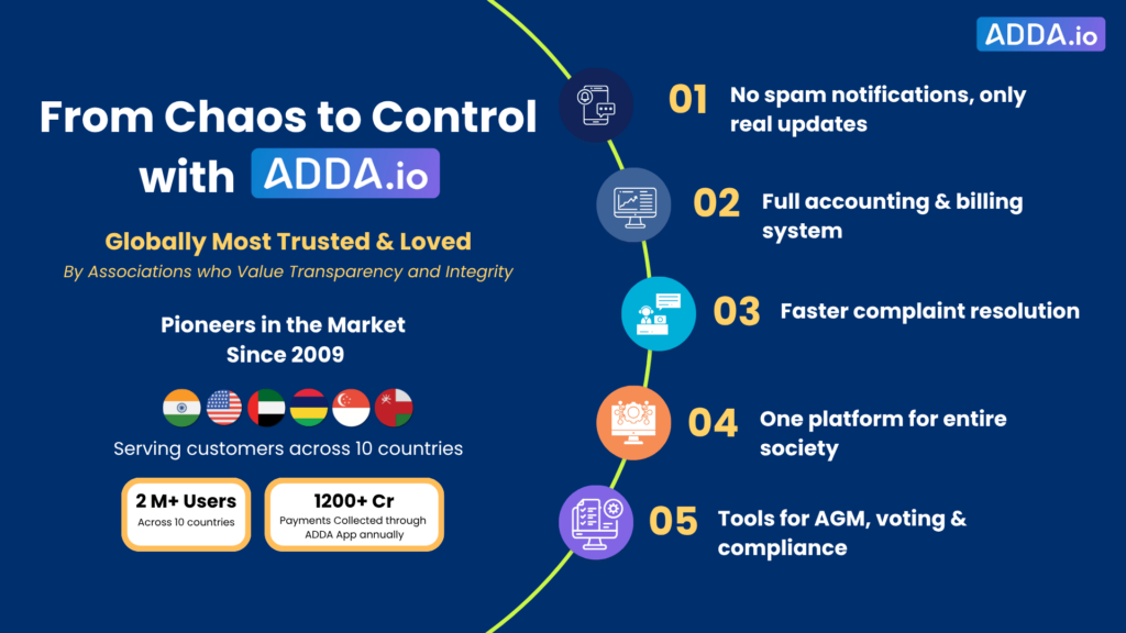 👉 If your community is evaluating how to strengthen these foundations, explore how large residential communities manage these 12 operational building blocks, as part of the 4 pillars, using platforms like ADDA.io. You can also schedule a walkthrough to see how communication, finances, security, and daily operations can run through one structured system.