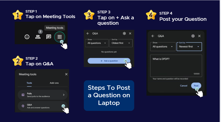 To keep the webinar smooth and ensure every question is captured, all attendees will join as viewers. This means your mic and camera will be off, and questions should be shared using Google Meet’s built-in Q&A feature.