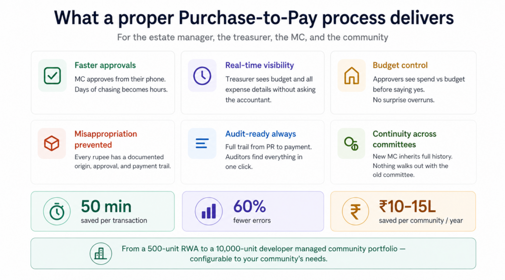There is a better way, and it has a name. It is called the Purchase-to-Pay process, or P2P for short. It sounds corporate, but once you understand what it actually does for a residential community, you will wonder how your society ever managed without it.