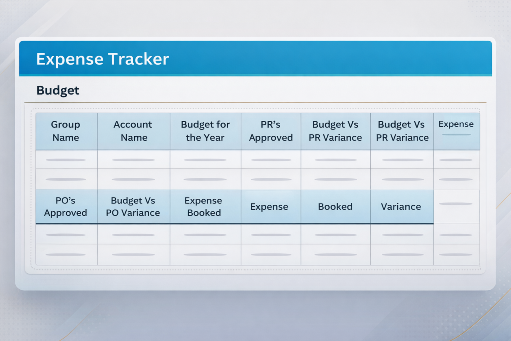 Needs to know, before raising any PR, whether a budget is available for that expense head. Instead of checking every time with the Accountant or Treasurer, a live view into the budget in the system makes decision making much faster and easier. The budget and variance display embedded in the PR creation workflow means this check happens automatically — every single time.