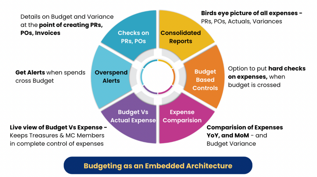 Yes. The budget and variance for the relevant expense head is displayed whenever a Purchase Request or invoice is raised in Expense Tracker. Community admins can also configure hard controls — blocking PRs that exceed budget — or soft alerts, sending notifications to the Treasurer when an expense is raised above budget.